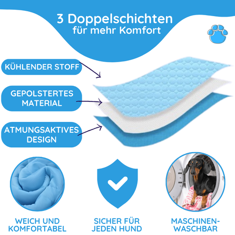 Unsere Kühlmatte reguliert die Körpertemperatur deines Hundes in Minuten – ohne Aufladen oder Einfrieren!